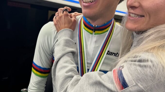 Gloire dorée et étreinte chaleureuse : le champion du monde célèbre sa victoire dans les bras de son plus grand supporter, un moment émouvant qui illustre le triomphe au-delà de la ligne d’arrivée et témoigne du pouvoir de l’amour derrière chaque médaille remportée. Lire la suite…