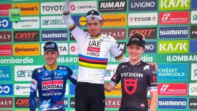 Tadej Pogacar (UAE) remporte Il Lombardia, parti en échappée au km 36 du Passo di Ganda, pour la cinquième fois consécutive, devenant ainsi le premier coureur à réaliser cette série sur le même Monument ! Il égale Fausto Coppi comme co-recordman de l’épreuve ! Un véritable coup de maître pour le champion du monde !… Lire la suite.