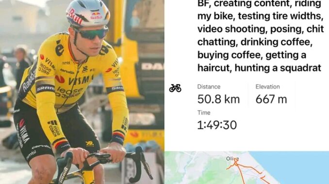 Wout van Aert schakelt een tandje bij in zijn zoektocht naar topvorm — fans staan versteld van zijn meedogenloze trainingsblok dat vandaag op Strava verschijnt, vol met zware kilometers, brute intensiteit en duidelijke tekenen dat de Belgische allrounder niets aan het toeval overlaat in aanloop naar een seizoen waarin hij opnieuw geschiedenis wil schrijven.