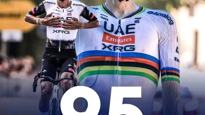Une force irrésistible ! L’équipe UAE Team Emirates pulvérise tous les records avec 95 victoires en 2025 — une saison historique de domination totale, menée par le génie de Tadej Pogačar, la cohésion de l’équipe et un esprit combatif qui a redéfini l’excellence du cyclisme moderne ! Le monde entier est admiratif devant la performance exceptionnelle de l’UAE, qui établit une nouvelle référence en matière de grandeur !