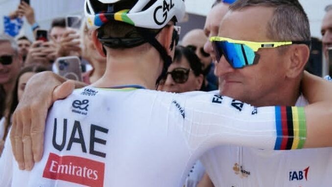 Étreinte émouvante : La famille est tout pour moi – Les coureurs de l’équipe Emirates des Émirats arabes unis partagent un moment d’unité et de triomphe devant des fans en délire après un exploit cycliste monumental