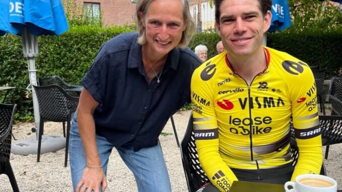 Koffie, rust en stille zelfverzekerdheid: een ster in het gele shirt neemt even afstand van de hectiek en deelt een eenvoudig moment in een café dat de menselijke kant van de topsport in het wielrennen laat zien – waar glimlachen de stopwatch vervangen, herstel net zo belangrijk is als de wedstrijd zelf, en zelfs de snelste renners even pauzeren om adem te halen, contact te maken en zich te herinneren waarom ze verliefd werden op de sport.