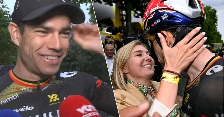 Een glimlach over de finishlijn: Wout van Aert deelt een vreugdevol moment met zijn vrouw Sarah en bedankt zijn fans