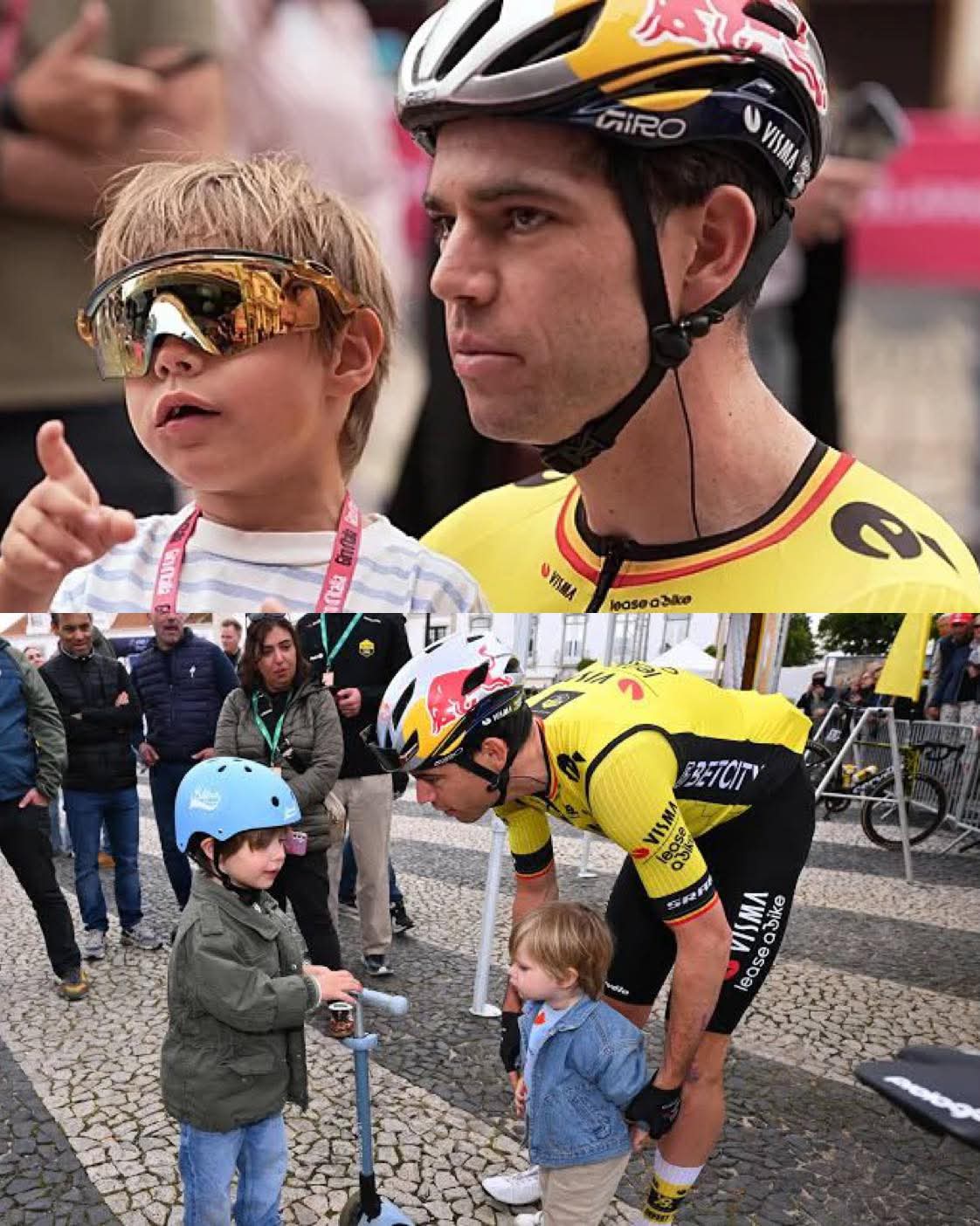 In een sport die vaak wordt gekenmerkt door intensiteit, focus en felle competitie, was het een zachtaardig, onverwacht moment naast de fiets dat de harten van fans wereldwijd veroverde. Slechts enkele minuten voor de start van een groot wielerevenement creëerde een topwielrenner een onvergetelijk tafereel – een tafereel dat de zachtere, menselijke kant van een kampioen liet zien.