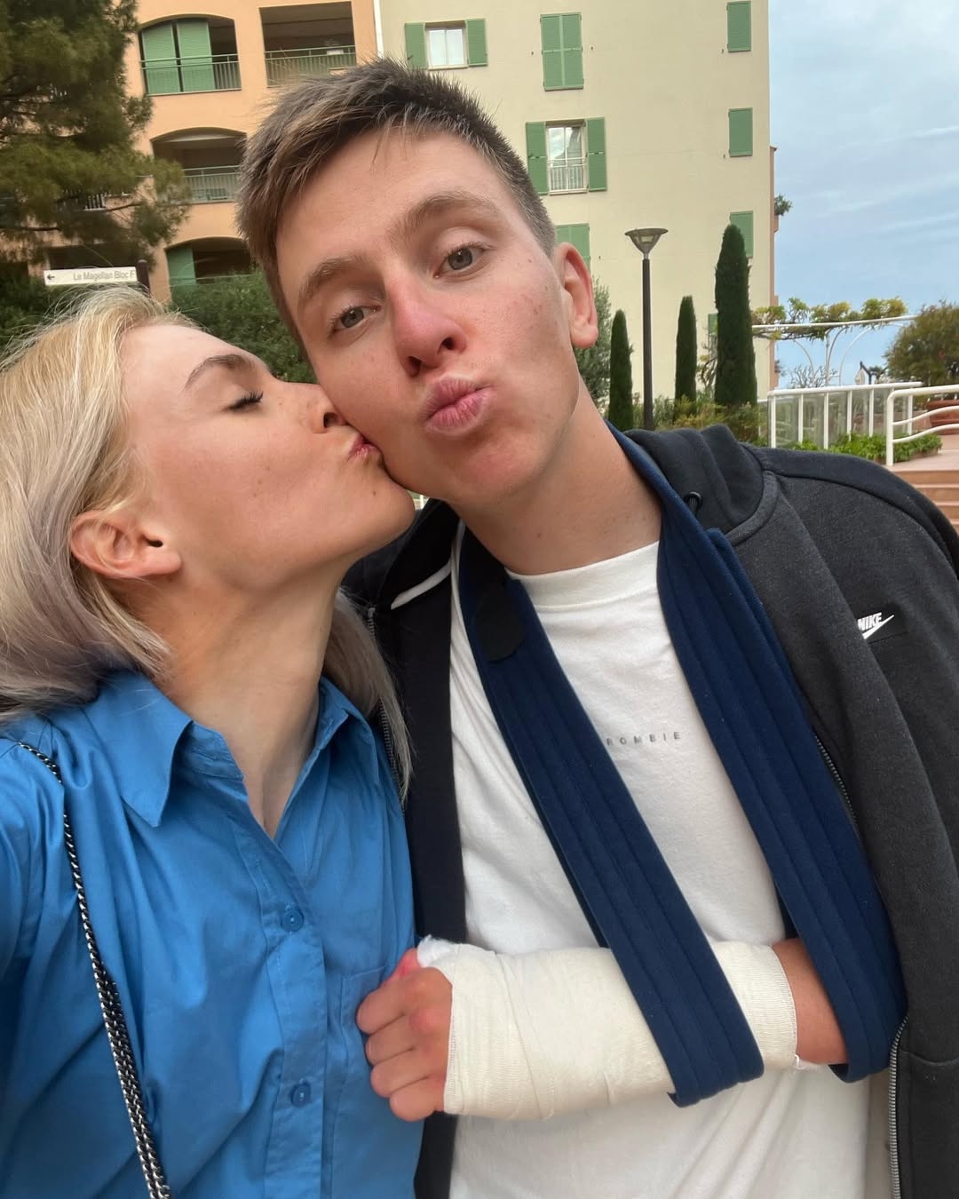 Partagée sur les réseaux sociaux, la publication témoigne non seulement de la convalescence physique du champion, mais aussi de sa force morale. Le cycliste, qui s’est récemment blessé à l’entraînement, a pris du temps pour se soigner, et il semble que l’amour et l’optimisme jouent un rôle essentiel dans son retour. Le doux baiser de sa compagne et son expression enjouée sont devenus les symboles d’un soutien indéfectible face à l’adversité.