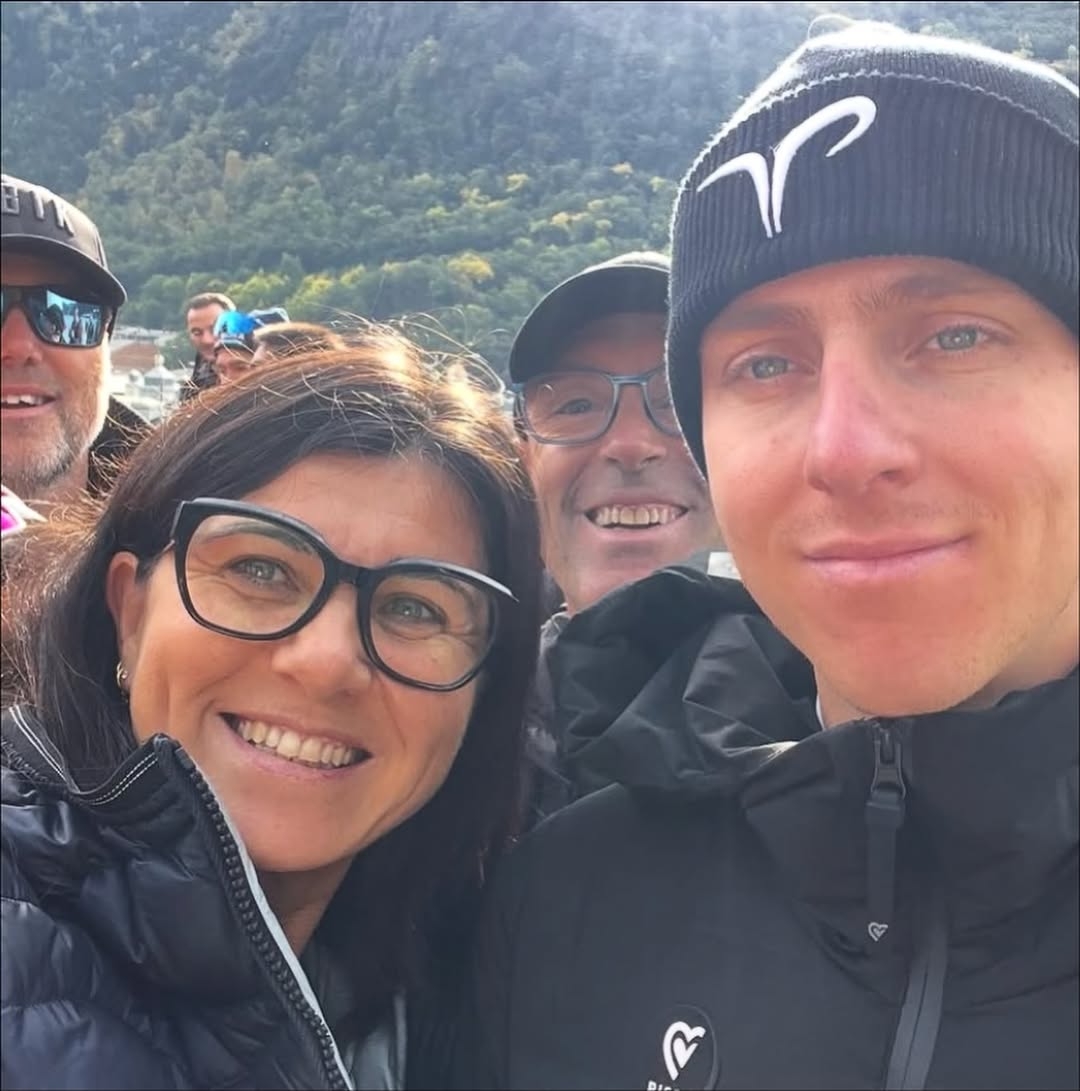 La photo, prise lors d’une retraite paisible en montagne, est rapidement devenue un symbole d’équilibre entre compétition et camaraderie. Malgré la pression du sport de haut niveau, il est clair que le véritable bonheur naît souvent des moments les plus simples : le rire, l’air frais et l’amitié. Le cycliste, qui a passé d’innombrables journées à conquérir des ascensions exténuantes et des descentes à couper le souffle, semblait parfaitement apaisé lorsqu’il partageait le cliché avec ses proches.