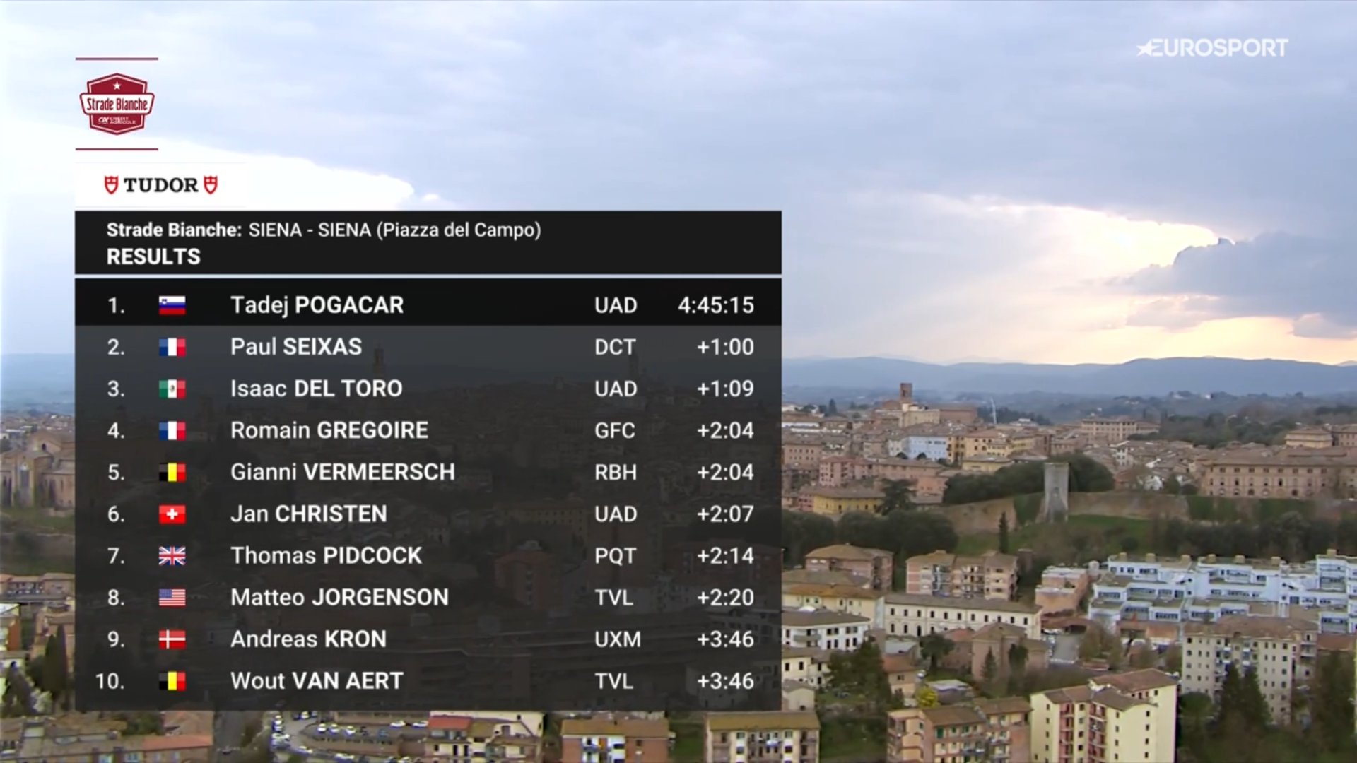 De koers bleek dit jaar bijzonder zwaar, met diverse explosieve aanvallen en een meedogenloos tempo bepaald door de sterkste renners. Het jonge Franse talent Paul Seixas eindigde als tweede, terwijl Isaac del Toro van UAE Team Emirates het podium completeerde achter zijn dominante teamgenoot.